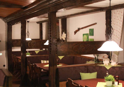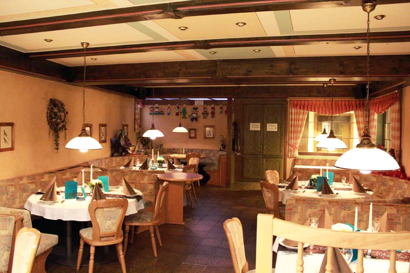 …eingerichteten Restaurant begrüßen wir Sie gerne als unseren Gast. Unser Restaurant bietet Platz für 60 Personen. Wir verwöhnen Sie hier mit vielen unterschiedlichen Gerichten. Darüber hinaus verfügen wir noch über einen Saal mit 120 Plätzen.